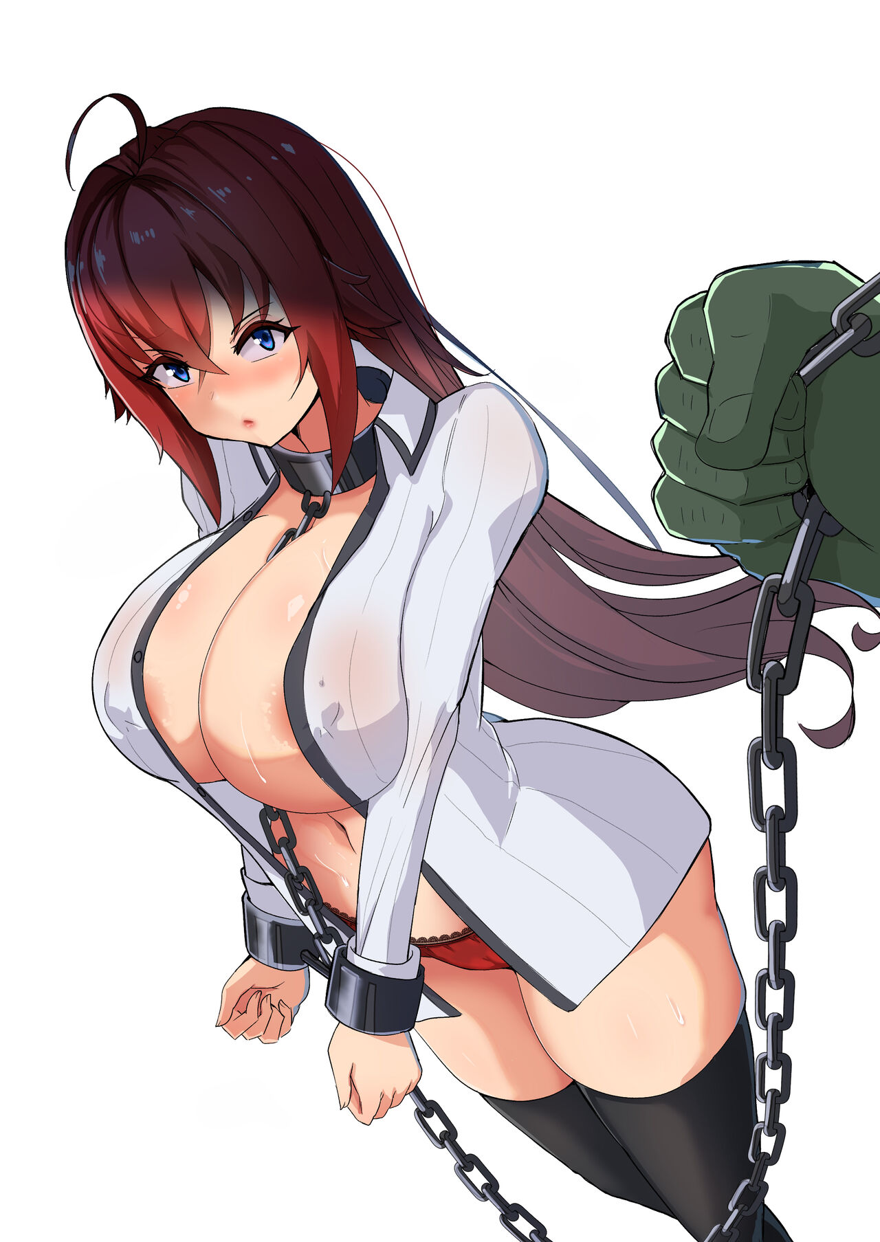 Ahegao, big breasts, collar, Crotch-tattoo, Cumflation, Furry, Gloves, netorare, Nipple Piercing, piercing, pig man, sole female, stockings, stomach deformation