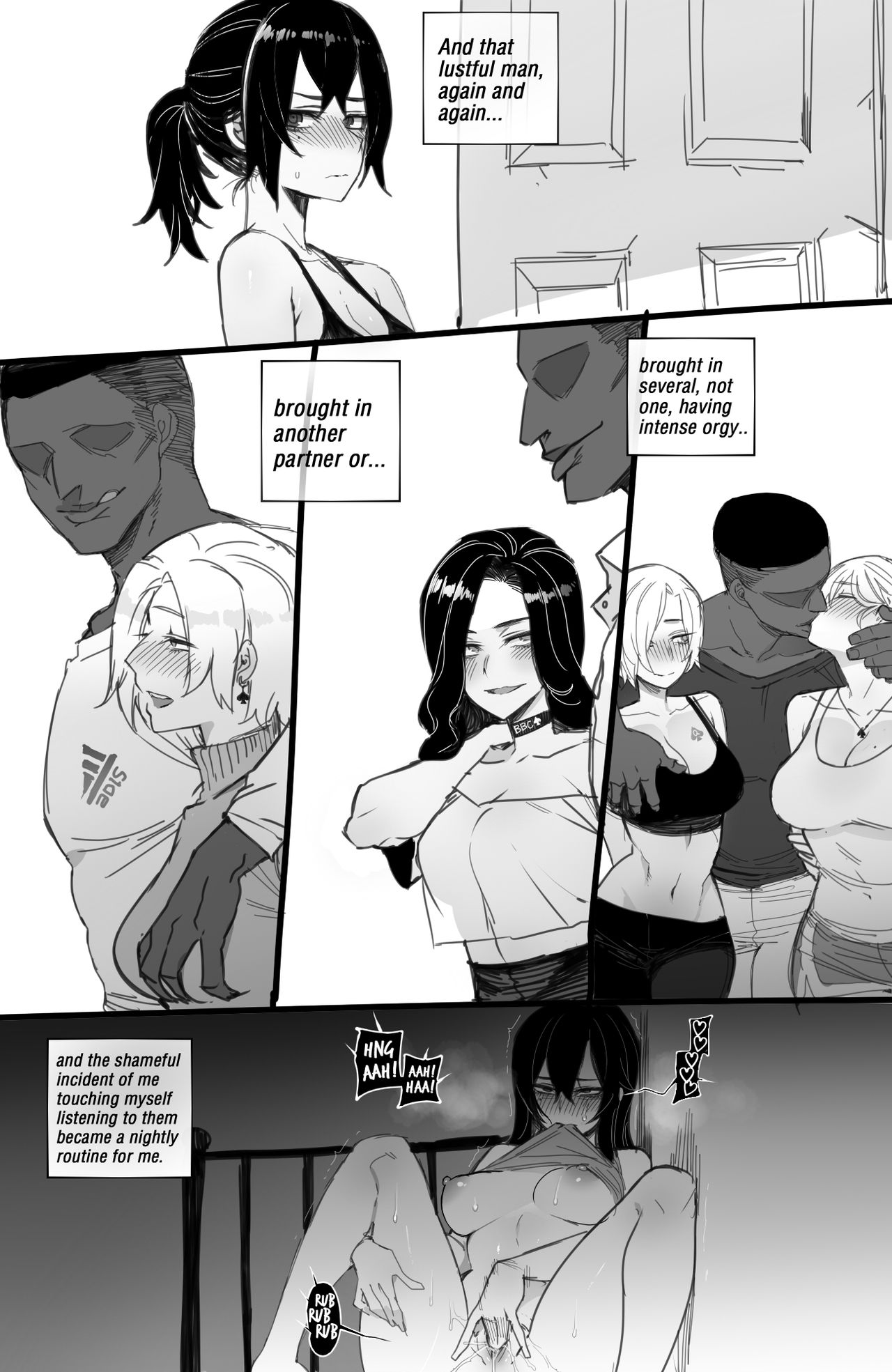 big breasts, big penis, blowjob, Chastity-belt, cheating, collar, dark skin, Humiliation, muscle, nakadashi, netorare, ponytail, tall man