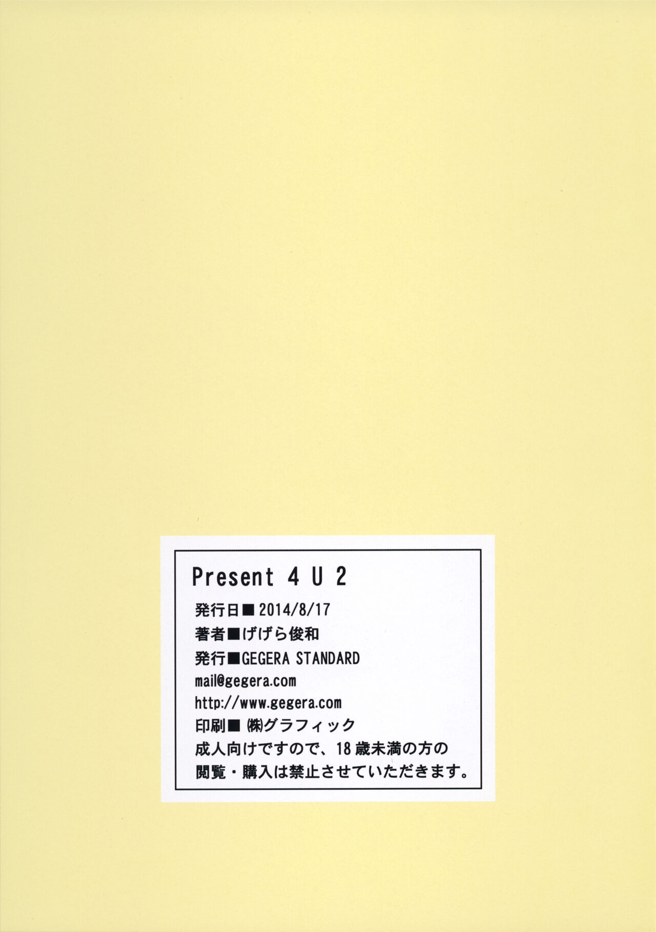 - (C86) [GEGERA STANDARD (Gegera Toshikazu)] Present 4 U 2 (PERSONA 4) [English] {doujin-moe us}