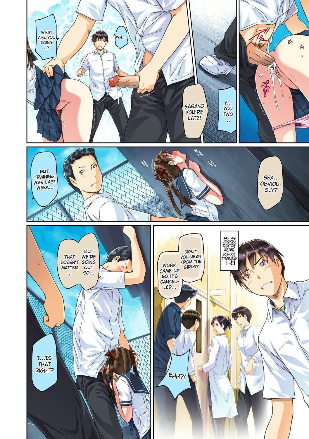 Exhibitionism, Full Color, glasses, group, multi-work series, nakadashi, schoolboy uniform, schoolgirl uniform, sole male, stockings, swimsuit, twintails, Uncensored